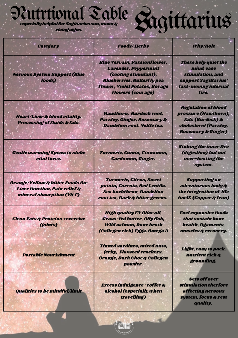 The intention behind Sagittarius-aligned nutrition is to steady the system so the spirit can wander freely.